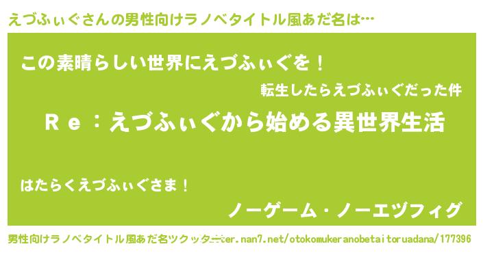 | ヒーロー風カッコイイあだ名 | 『最強戦士エヅフィグ』『仮面エヅダー』 |