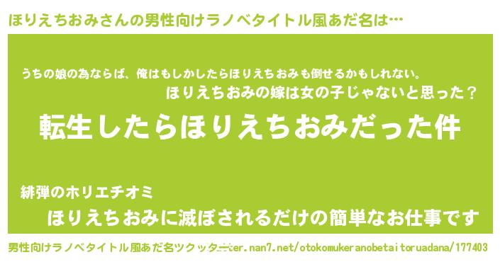 | ヒーロー風カッコイイあだ名 | 『ウルトラほりえちおみマン』 |