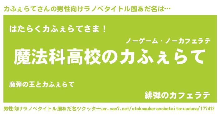 | 胡散臭い通販商品みたいなあだ名 | 『テレビで話題の高麗人参…その名も「カふぇらて」』 |