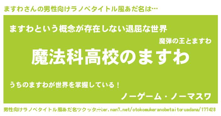 | 女子向けラノベタイトル風あだ名 | 『ますわなんてお断りですっ。』 |