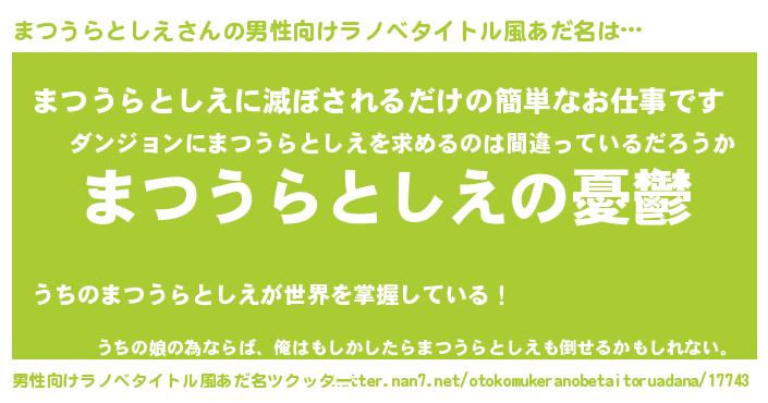 | 胡散臭い通販商品みたいなあだ名 | 『必ず成功する霊験あらたかなお札…その名も「まつうらとしえ」』 |