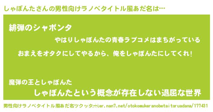| 女子向けラノベタイトル風あだ名 | 『しゃぼんた夫妻のなれそめ』 |