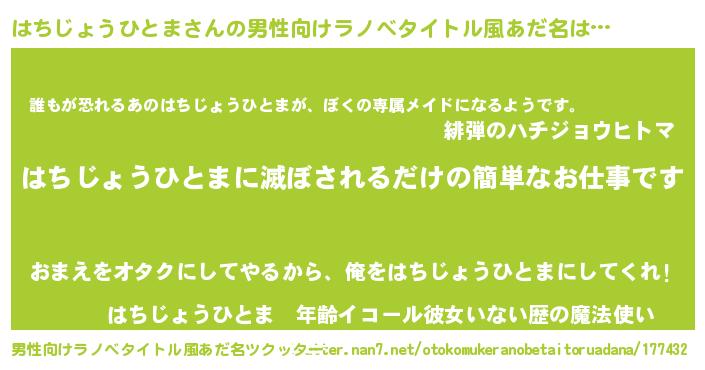 | ヘコむあだ名 | 『はちじょうひとま(笑)』『酢こんぶ』 |