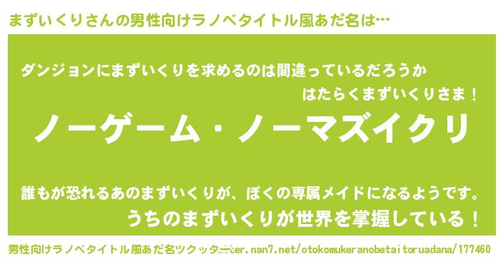 | 女子向けラノベタイトル風あだ名 | 『まずいくり恋絵巻』 |