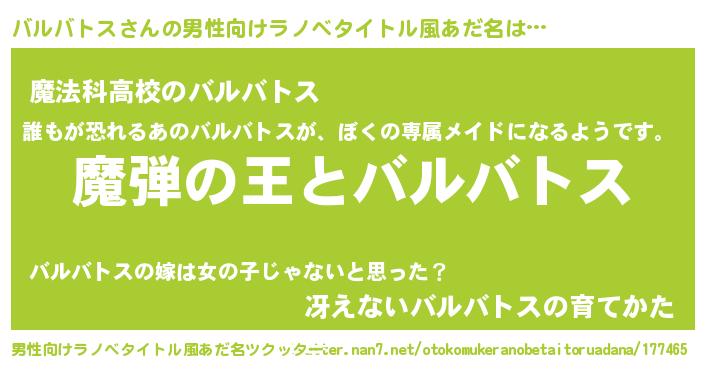 | ヘコむあだ名 | 『バルバトス(笑)』『バルぷりん』 |