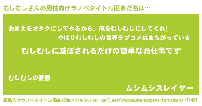 | ヘコむあだ名 | 『なまこ酢』『むしにー』 |