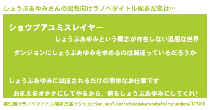 | 意味不明あだ名 | 『とにかく怪しいしょうぶあゆみ』 |