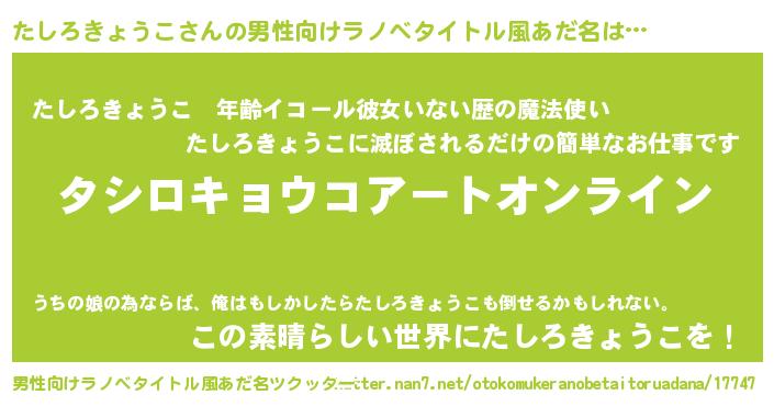| 胡散臭い通販商品みたいなあだ名 | 『モテモテ間違いなし霊験あらたかなお札…その名も「たしろきょうこ」』 |