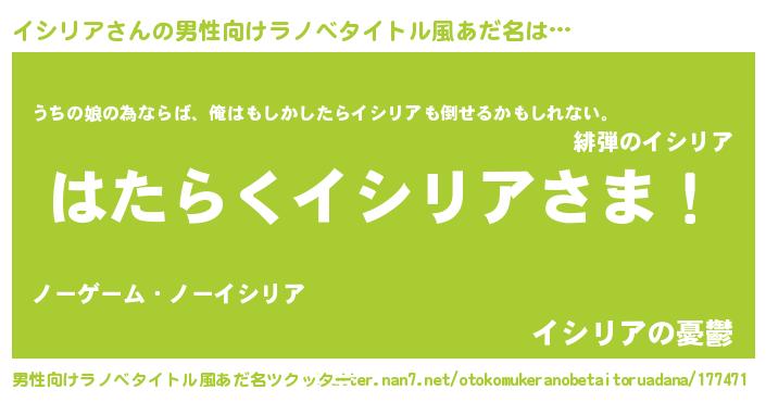 | ファンタジー風あだ名 | 『エターナルイシリアー』『イシフェル』 |