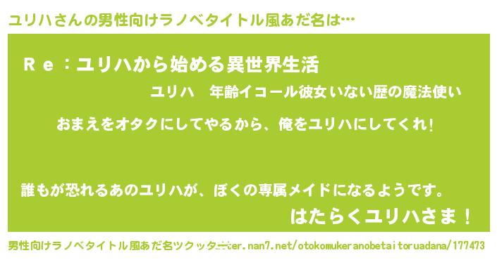 | 意味不明あだ名 | 『眠気覚ましガムユリハ味』『自称ユリハ』 |