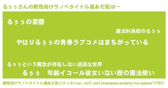 | 女子向けラノベタイトル風あだ名 | 『るぅぅ伯爵の花嫁』 |