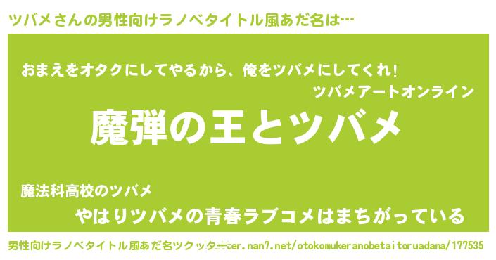 | ヒーロー風カッコイイあだ名 | 『仮面ツバダー』『友情の使者ツバメ』 |