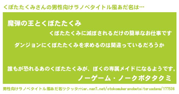 | 女子向けラノベタイトル風あだ名 | 『くぼたたくみは平凡を望む』 |