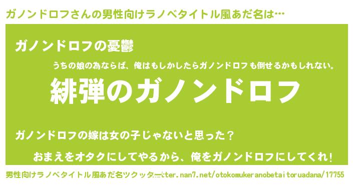 | 胡散臭い通販商品みたいなあだ名 | 『必ず成功する水晶球…その名も「ガノンドロフ」』 |