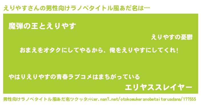 | ヒーロー風カッコイイあだ名 | 『正義の使者えりやす』『仮面エリダー』 |