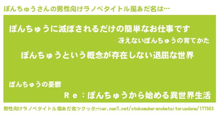 | 胡散臭い通販商品みたいなあだ名 | 『来世でも幸せになれる健康食品…その名も「ぽんちゅう」』 |