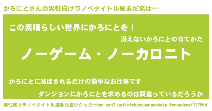 | 伝説のあだ名 | 『救世主となる錬金術士かろにと』 |