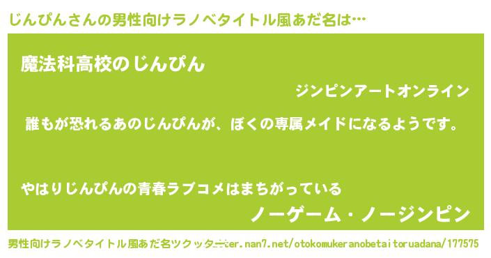 | 意味不明あだ名 | 『永久保存じんぴん』『自称じんぴん』 |