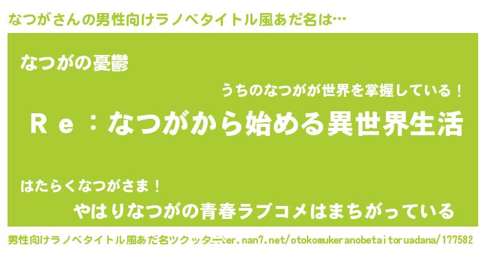 | 女子向けラノベタイトル風あだ名 | 『なつがストレイドッグス』 |