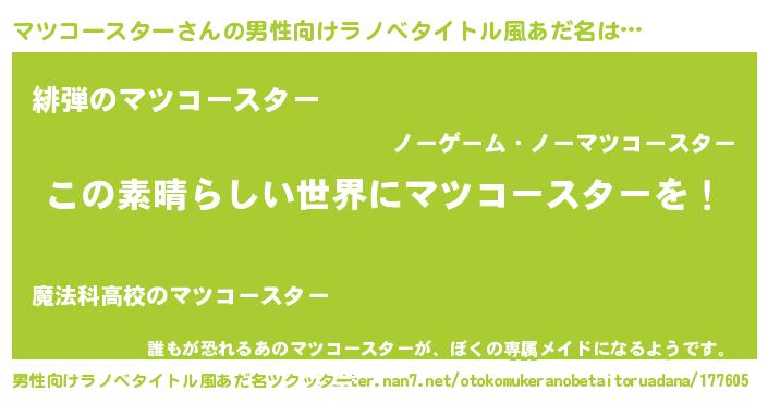| 女子向けラノベタイトル風あだ名 | 『乙女ゲームの破滅フラグしかない悪役マツコースターに転生してしまった…』 |
