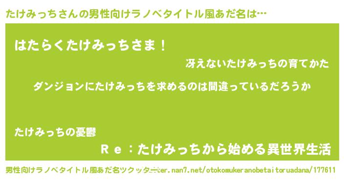 | 胡散臭い通販商品みたいなあだ名 | 『信頼と実績のペンダント…その名も「たけみっち」』 |