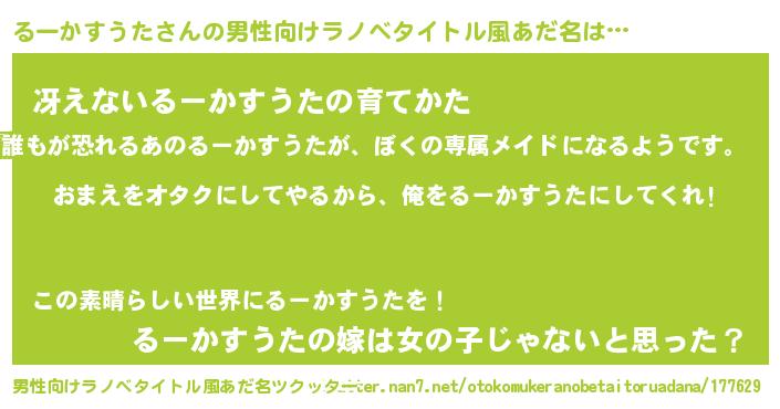 | 女子向けラノベタイトル風あだ名 | 『るーかすうた夫妻のなれそめ』 |