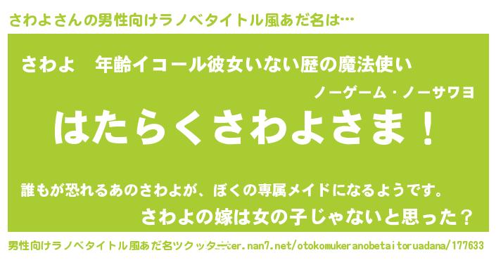 | ヒーロー風カッコイイあだ名 | 『黄金騎士サワ』『慈愛の使者さわよ』 |