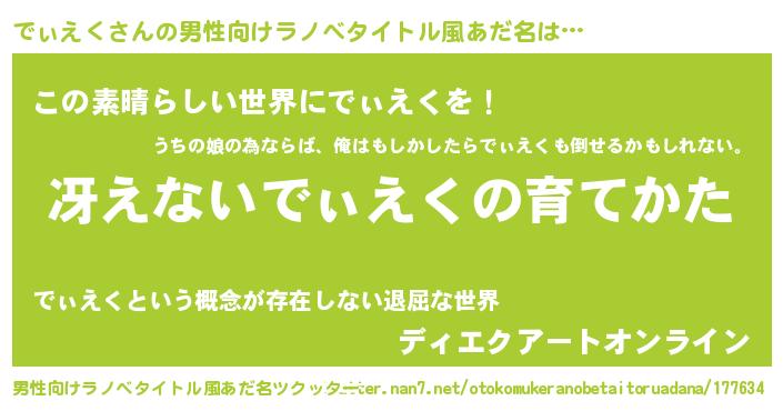 | 意味不明あだ名 | 『住所不定無職でぃえく(81歳)』 |