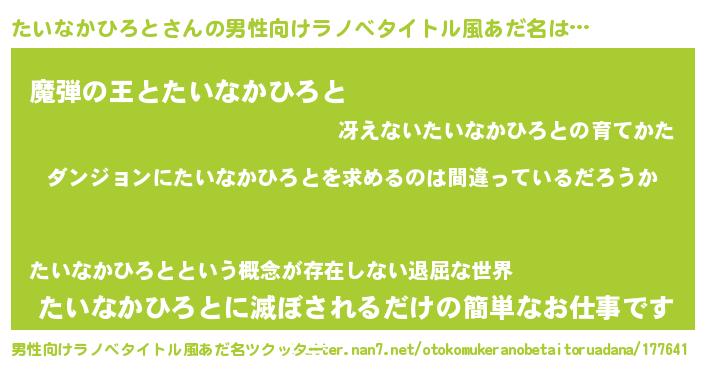 | 胡散臭い通販商品みたいなあだ名 | 『伝統あるサプリメント…その名も「たいなかひろと」』 |