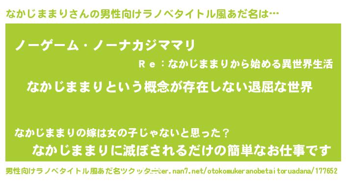 | 女子向けラノベタイトル風あだ名 | 『なかじままりの契約王妃』 |