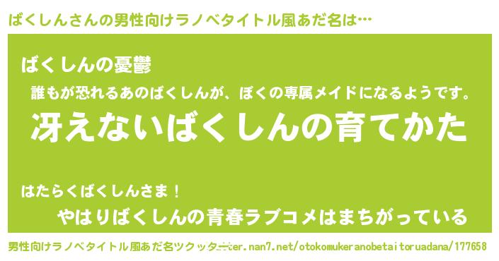 ばくしんさんの男性向けラノベタイトル風あだ名をツクッター!
