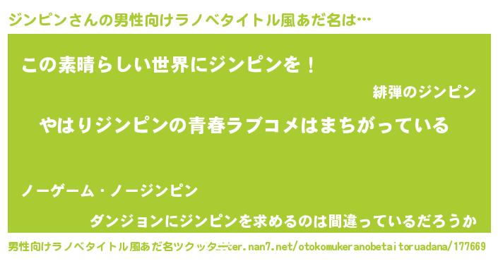| ヒーロー風カッコイイあだ名 | 『ウルトラジンピンマン』『仮面ジンダー』 |