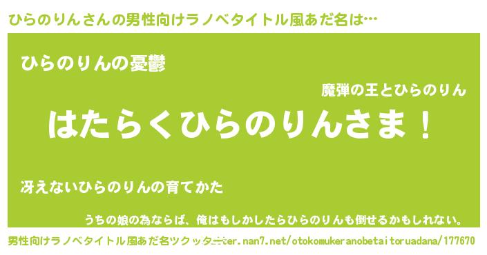 | 胡散臭い通販商品みたいなあだ名 | 『必ず成功するブレスレット…その名も「ひらのりん」』 |