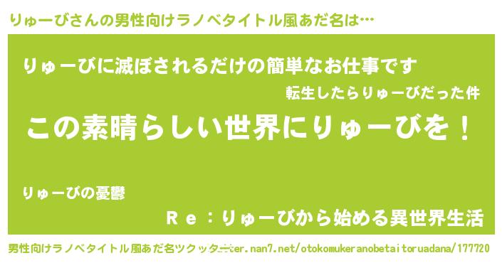| ヘコむあだ名 | 『りゅもー』『なまこ酢』『りゅっ子』 |