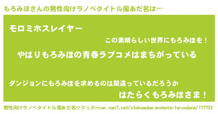 | 意味不明あだ名 | 『もろみほフォーエバー』『自称もろみほ』 |