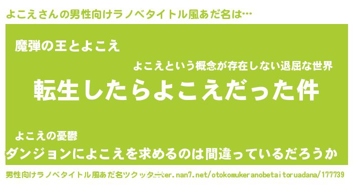 | 胡散臭い通販商品みたいなあだ名 | 『世界中を虜にした限定10本のレアな日本酒…その名も「よこえ」』 |