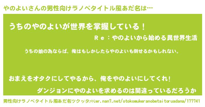 | 女子向けラノベタイトル風あだ名 | 『やのよいの婚約者』『やのよい恋絵巻』 |