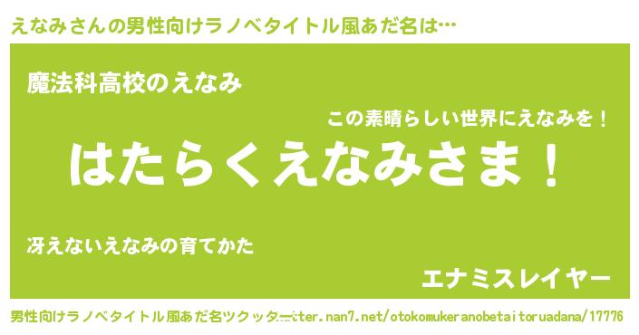 | 意味不明あだ名 | 『自称えなみ』『なめこ科えなみ属』 |