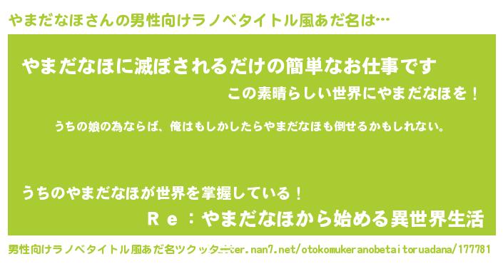 | 女子向けラノベタイトル風あだ名 | 『やまだなほ伯爵の花嫁』 |