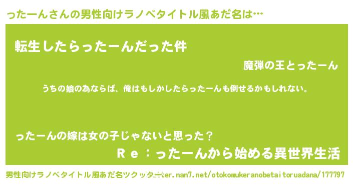 | 胡散臭い通販商品みたいなあだ名 | 『運命の人と巡り会える高級そうな絵画…その名も「ったーん」』 |