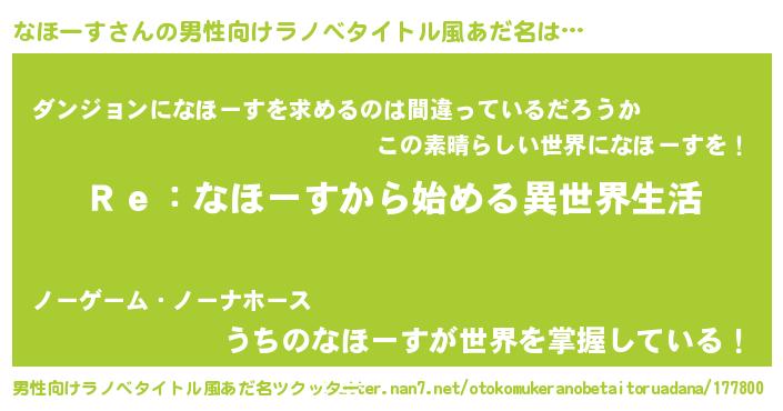 | 女子向けラノベタイトル風あだ名 | 『なほーすストレイドッグス』 |