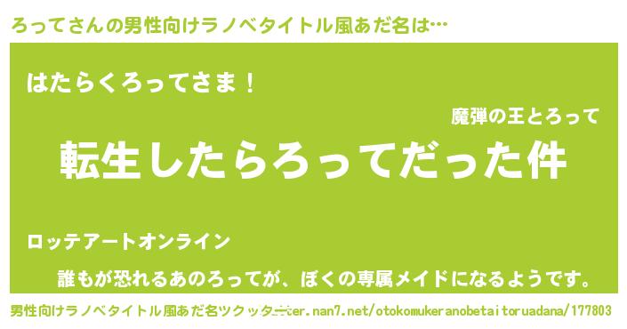 | ヘコむあだ名 | 『ろって(小並感)』『ろっもー』 |