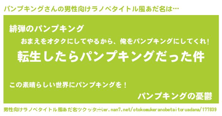 | 胡散臭い通販商品みたいなあだ名 | 『モテモテ間違いなし霊験あらたかなお札…その名も「パンプキング」』 |