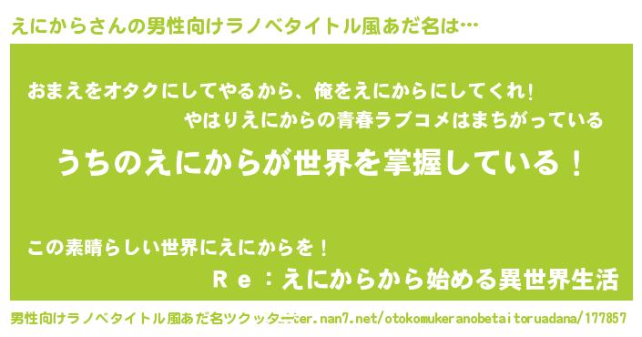 | 胡散臭い通販商品みたいなあだ名 | 『モンドセレクションを受賞したイリジウム磁石…その名も「えにから」』 |