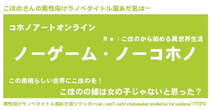 | 伝説のあだ名 | 『救世主となる錬金術士こほの』 |