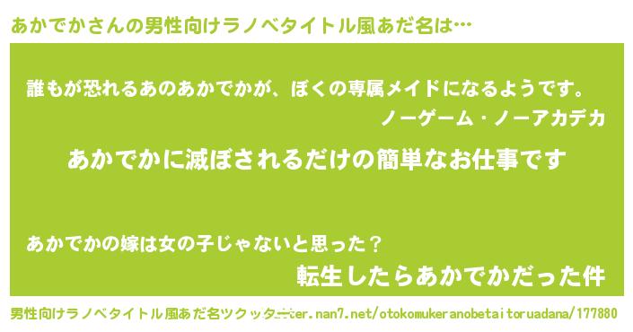 | 胡散臭い通販商品みたいなあだ名 | 『来世でも幸せになれる水素水…その名も「あかでか」』 |