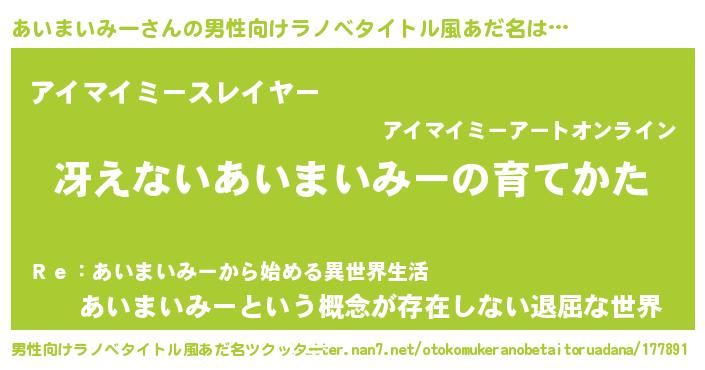 | 胡散臭い通販商品みたいなあだ名 | 『来世でも幸せになれる健康食品…その名も「あいまいみー」』 |