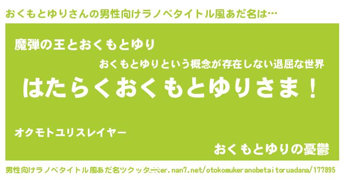 | 意味不明あだ名 | 『住所不定無職おくもとゆり(59歳)』 |