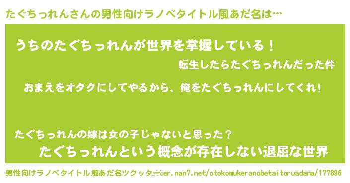 | ヘコむあだ名 | 『たぐちっれん(小並感)』『たぐっぺ』 |