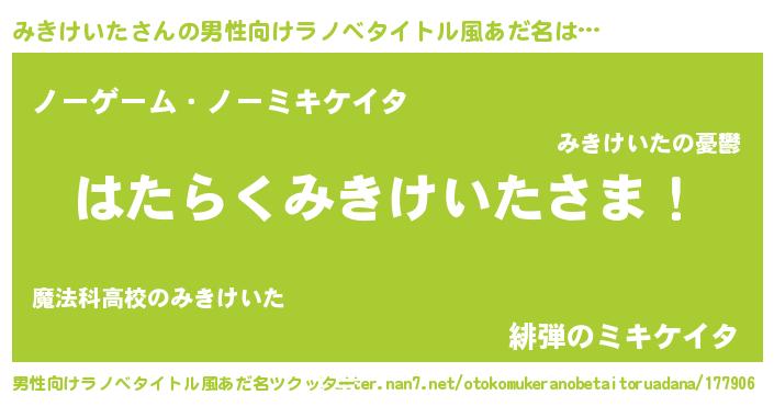 | ヒーロー風カッコイイあだ名 | 『友情の使者みきけいた』『暗黒騎士ミキ』 |